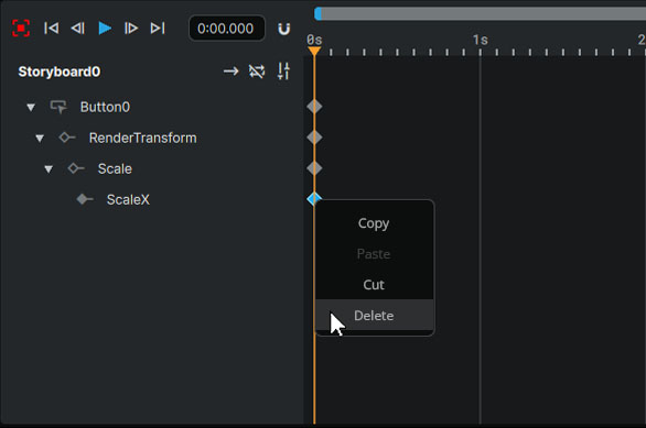 | Description | Currently, only the 'Copy' action exists when Right-Clicking on a Keyframe in the Animation Timeline. This ticket is to propose the addition of the following: 0) Copy (as-is) 1) Paste (If the context menu is opened from the keyframe, replaces at the timestamp of the selected keyframe ---- if the context menu is actioned from the Timeline background, pastes the keyframe at the current position of the playhead) 2) Cut (Copies current keyframe, then deletes it, whilst keeping copied values in clipboard) 3) Delete (Removes right-clicked keyframe) Note: I got the colour wrong in the mockup, the hover background on the individual item should be blue on "non-disabled" context menu items instead of grey | ||||